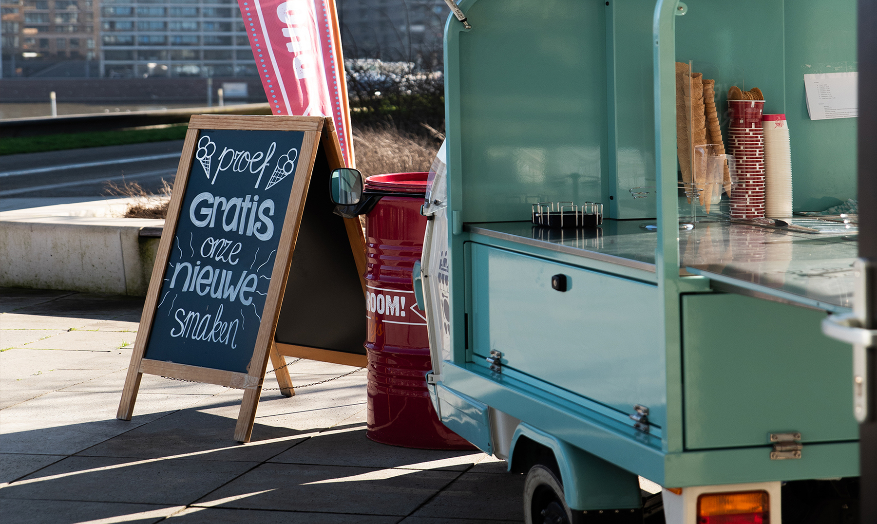 Ben jij fan van ons ijs en heb je iets te vieren? Dan kan je ook op locatie genieten van ons DROOM!ijs. Bijvoorbeeld op (bedrijfs)evenementen en festivals.