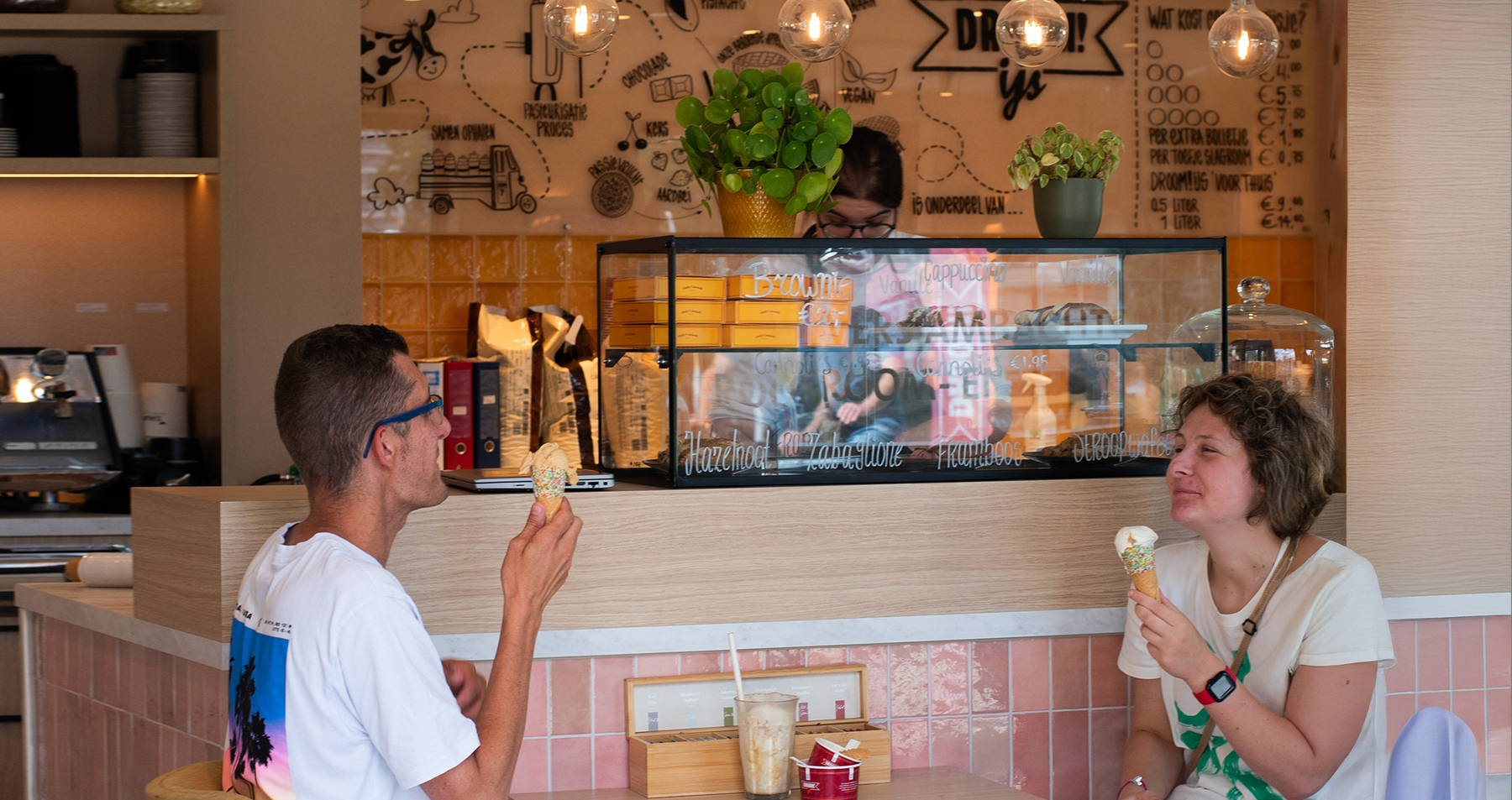 Wat onze ijssalon nog meer bijzonder maakt, is we werken met mensen met een afstand tot de arbeidsmarkt. DROOM! staat namelijk bekend om haar sociale karakter en geeft net dat extra aan jouw bezoek aan één van onze locaties. Wil je meer weten over onze werkwijze, lees hier dan ons verhaal.